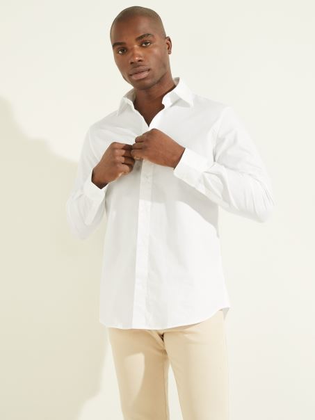 Construită Dintr-o Fabricație Luxoasă Din Bumbac, Această Cămașă Cu Nasturi Fără Efort Are Un Guler Pliat Ascuțit, Manșete Crestate Pe Mânecile Lungi și Un Tiv De Jos Rotunjit.