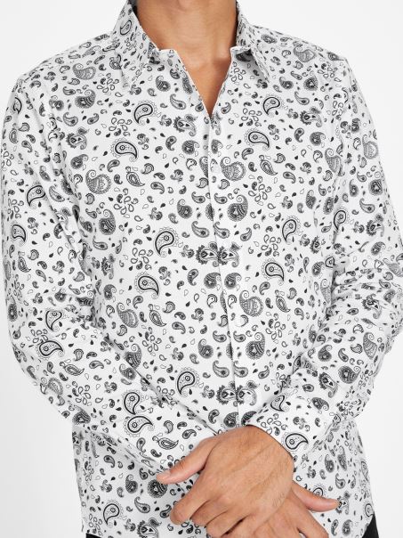 Poplin Lustruit Alcătuiește This Cămașă țesătă Stretch, Cu Imprimeu Paisley, Guler Pliat, Mâneci Lungi, Manșete Cu Nasturi, Tivul Cămășii și închidere Cu Nasturi.