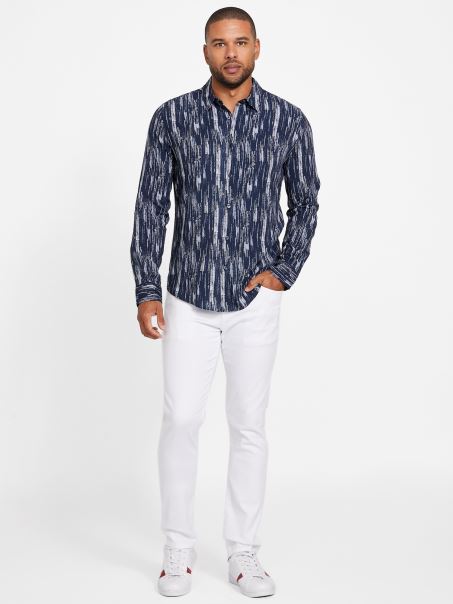 Cămașă Cu Imprimeu Botan Guess Albastru Mătase