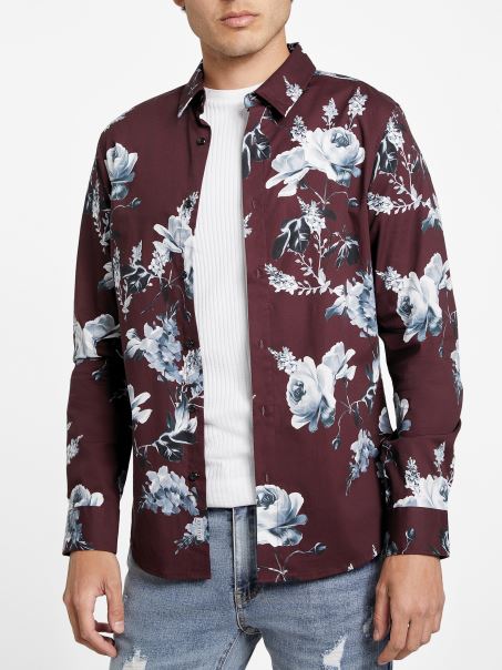 Un Imprimeu Floral Peste Tot înviorează Această Cămașă Din Popelin Elastic, Cu Guler Pliat, Mâneci Lungi Cu Nasturi, Tiv Cu Coada Cămășii și închidere Cu Nasturi.