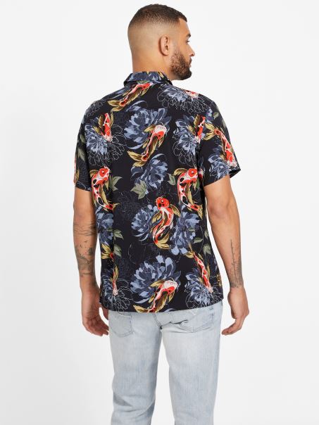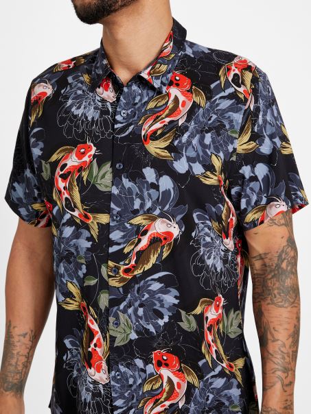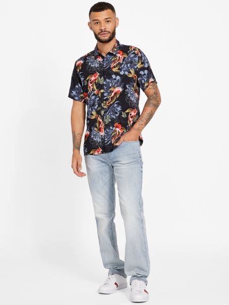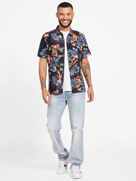 Cămașă Guess Eco Beric Koi Albastru înnegrit