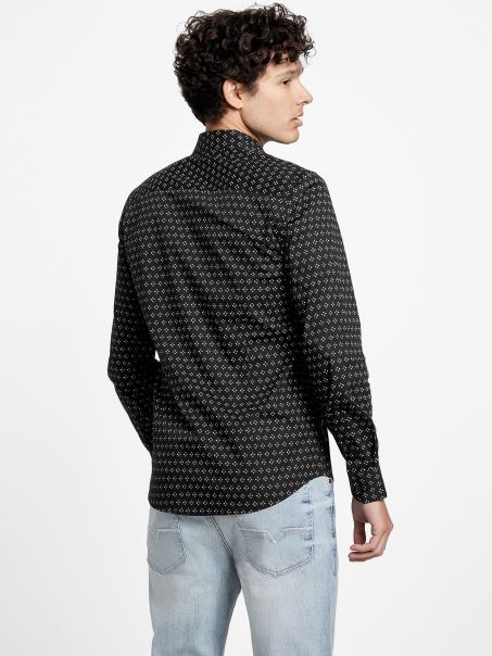 Cămașă Guess Tully Geo Buzunar Negru Jet
