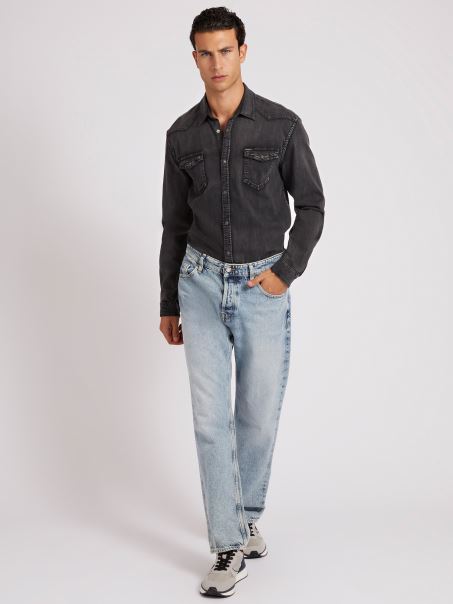 m2yh02d4f34- cămașă Din Denim Din Amestec De Bumbac.