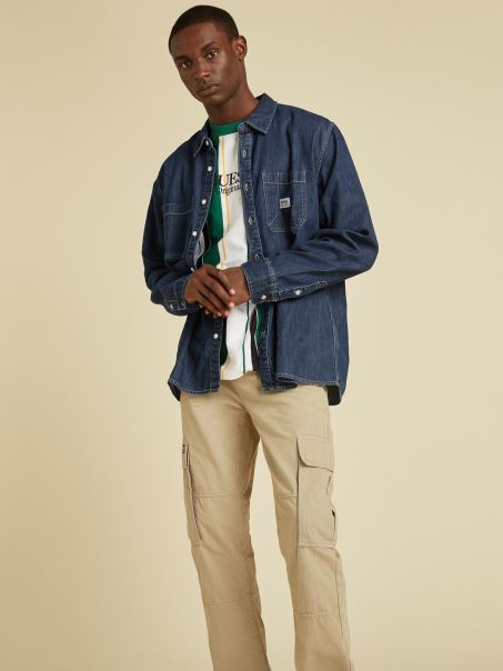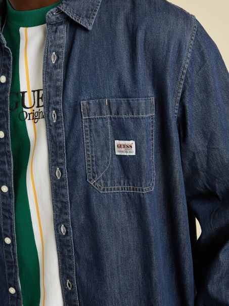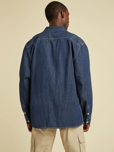 Home| Bărbați| îmbrăcăminte| Cămăși| Cămașă Obișnuită Din Denim Albastru Guess