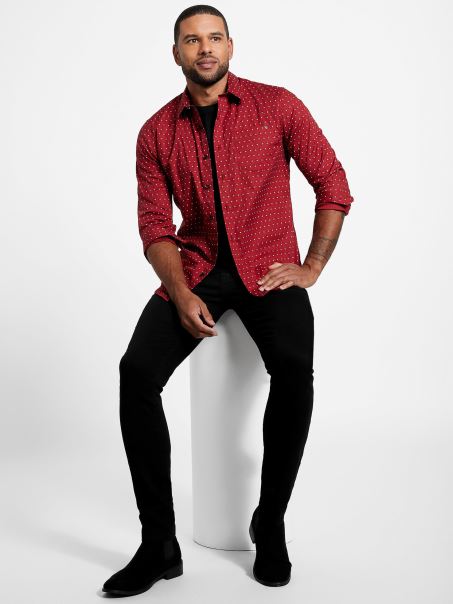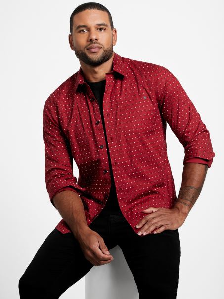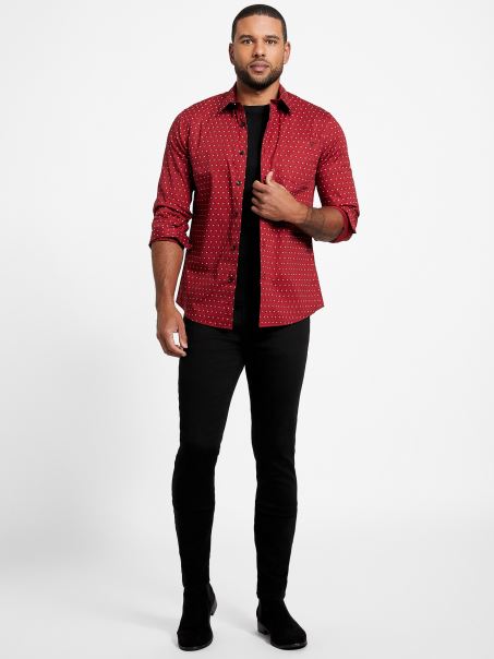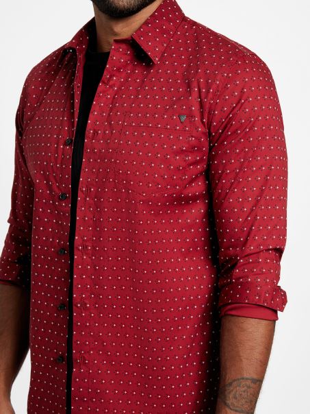 Croită și Lustruită, This Cămașă Din Popelin Elastic Are Un Imprimeu Geografic Peste Tot, Guler Pliat, Mâneci Lungi Cu Nasturi, Buzunar La Piept, Tiv Cu Coada Cămășii și închidere Cu Nasturi.