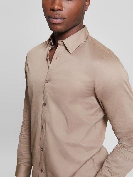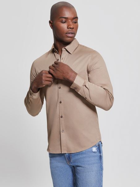 Rămâneți Lustruit în Această Cămașă țesătă Elastică, Cu închidere Cu Nasturi în Față, Guler Ascuțit și Mâneci Lungi.