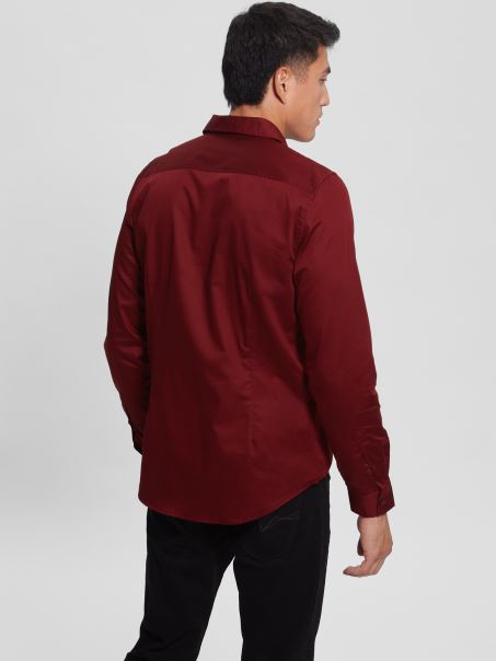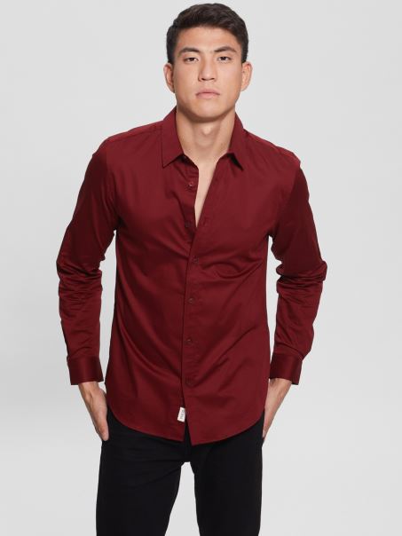 Rămâneți Lustruit în Această Cămașă țesătă Elastică, Cu închidere Cu Nasturi în Față, Guler Ascuțit și Mâneci Lungi.