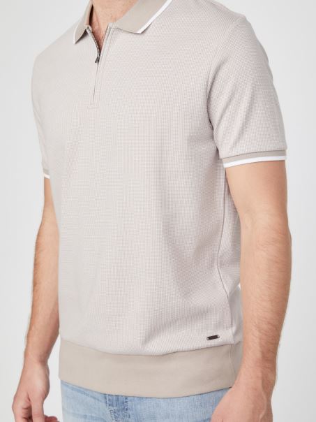 Un Polo Din Tricot Jacquard, Cu Un Fermoar Sfert, Guler Pliat, Bordură Cu Dungi și Mâneci Scurte.