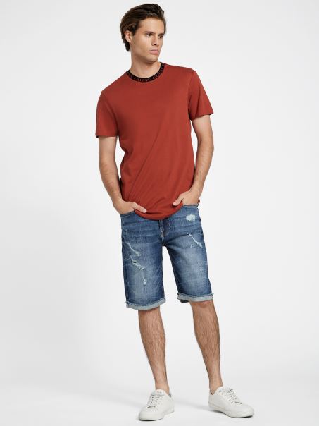 Un Element De Bază Actualizat, Acest Tricou Din Tricot Cu Mânecă Scurtă Este Proiectat Cu Un Detaliu De Logo Cu Nervuri Care Se Repetă La Decolteul Echipajului și Un Tiv Ușor Curbat.