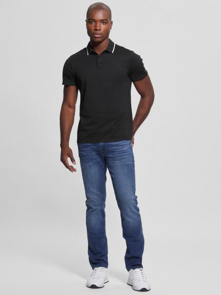 Guess Paul Pique Tape Tricou Polo Jet Black