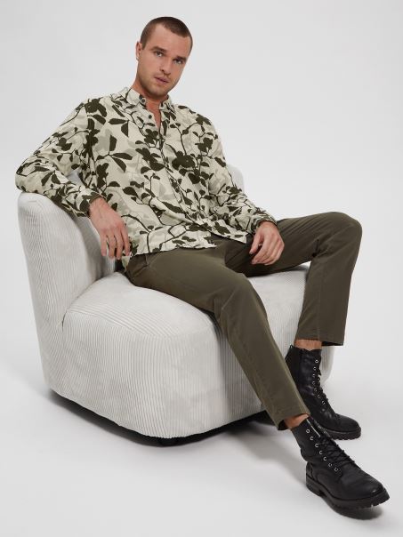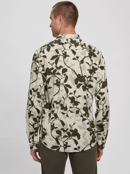 Un Imprimeu încâlcit Dă O Nouă Viață în Dulapul Tău. Cămașă Challis țesătă, Cu Imprimeu De Viță De Vie, Guler Pliat, Mâneci Lungi, Tiv Cu Coada Cămășii și închidere Cu Nasturi. Conține Fibre Forestiere Din Surse Responsabile.