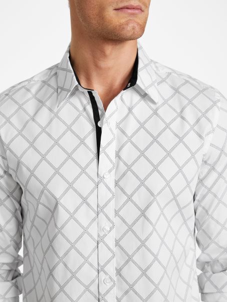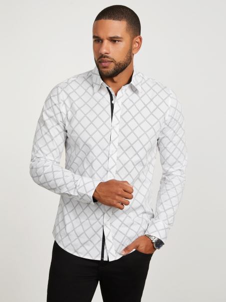 Ieși în Evidență Cu Această Cămașă Geometrică, Concepută Cu Imprimeu Geometric Cu Diamante, Guler Pliat, Mâneci Lungi și închidere Cu Nasturi în Față.