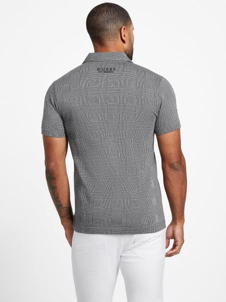 O Alternativă Excelentă La Tricou-ul Tău Clasic. Acest Polo Jacquard Are Un Model în Carouri Din Picioare De Hound, Guler Pliat, Plăcuță Cu Fermoar și Mâneci Scurte.