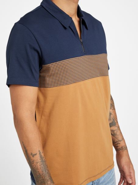O Alternativă Excelentă La Tricou-ul Tău Clasic. Acest Polo Jacquard Are Un Design Color-bloc, Cu Model în Carouri Din Picioare De Hîr, Guler Pliat, Plăcuță Cu Fermoar și Mâneci Scurte.