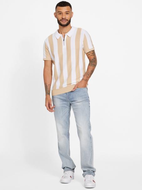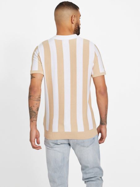 Ieși în Evidență Prin Acest Polo Cu Un Design în Dungi Verticale, Guler Contrastant, Piept Cu Jumătate De Fermoar și Tiv Cu Nervuri. Folosește Fibre De Bumbac Organic.