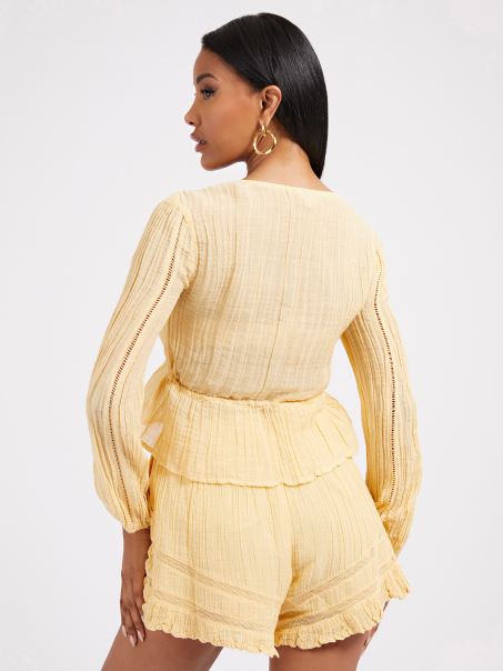 Home| Femei| îmbrăcăminte| Cămăși| Bluză Plisată Galbenă Guess