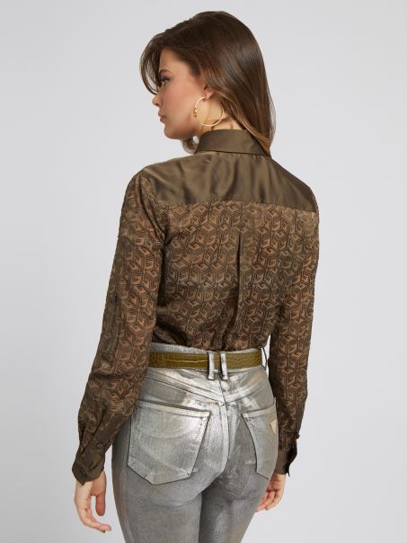 Home| Femei| îmbrăcăminte| Cămăși| Camasa Cu Imprimeu Guess G Cube Verde