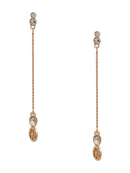 adăugați O Notă Subtilă Cu Acești Cercei Aurii Compuși Din Lanțuri Liniare Delicate Cu Logo-ul Atârnând și Brelocuri Din Cristal