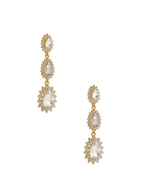 strălucire Care Oprește Spectacolul. Acești Cercei Cu Picătură Placați Cu Aur De 14k Prezintă Lacrimi De Cristal Cu Halouri Rotunde într-un Design în Cascadă.