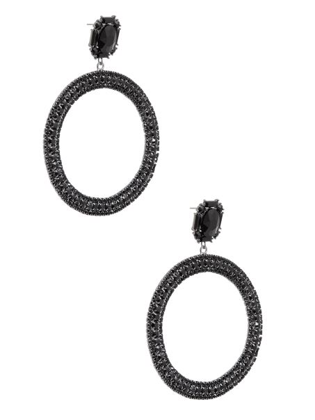fă O Declarație Cu Acești Cercei Strălucitori Cu Strasuri Negre, Cu O Bază Cu știfturi De Cristal Supradimensionate și Un Cerc Căzut.