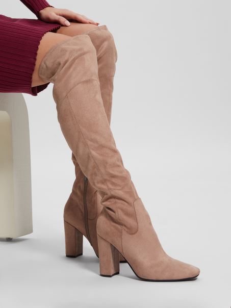 Abetter Cizme Peste Genunchi Din Piele De Căprioară Artificială Maro Mediu Guess
