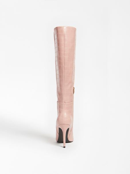 Cizme înalte Cu Imprimeu Ruke Croc Roz Guess
