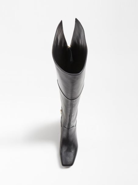 Cizme înalte Guess Finnola Neagră Din Piele Naturală