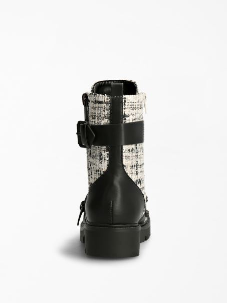 Cizme De Luptă Din Tweed Multi Rodeta Gri Guess