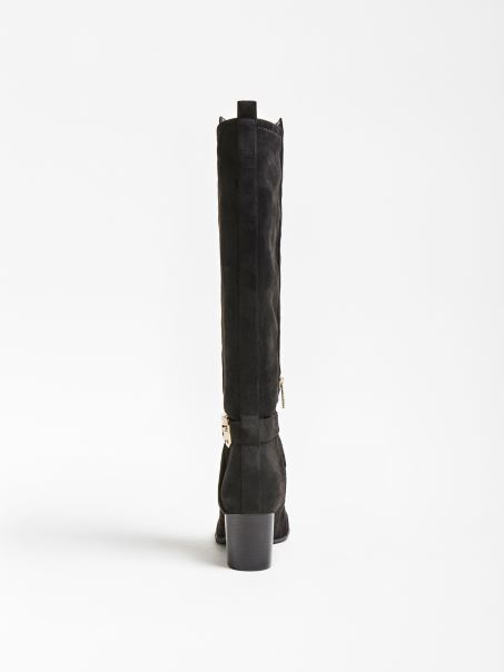Cizme Guess Paxley De Piele Intoarsa Neagra