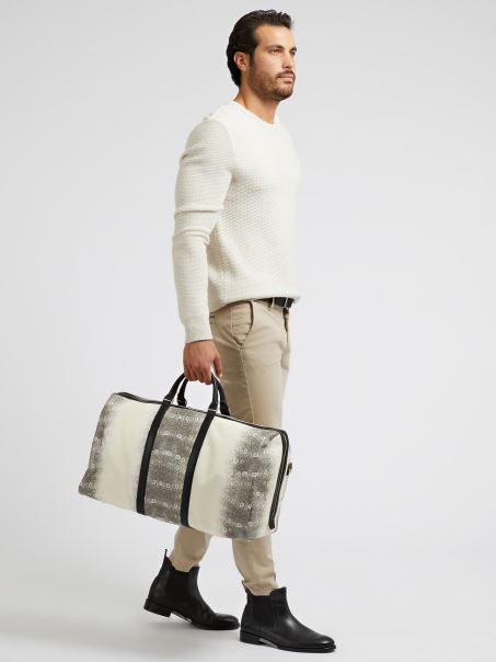 Geantă De Weekend De Seară Guess Cu Imprimeu Piton Alb