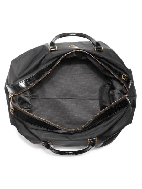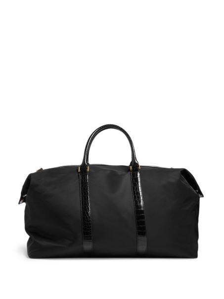 Proiectată Dintr-o Fabricație Netedă Din Nailon Din Poliester, Această Geantă De Voiaj Are Un Compartiment Principal Spațios și Ornamente Din Piele Artificială în Relief Cu Crocodil De-a Lungul închiderii Cu Fermoar și Mânere Superioare Duble.