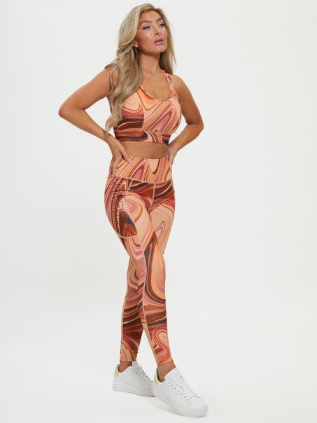 Ieși în Evidență în Timp Ce Te Antrenezi Cu Acești Jambiere Lungi, Cu Imprimeu Peste Tot, Potrivire înaltă și Text Cu Logo Conturat Pe Panoul Lateral. Realizate Din Plastic Reciclat.
