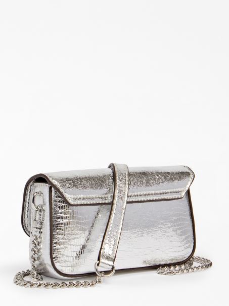 Geantă De Umăr Mini De Toamnă De Noapte Foliată Guess Argintie