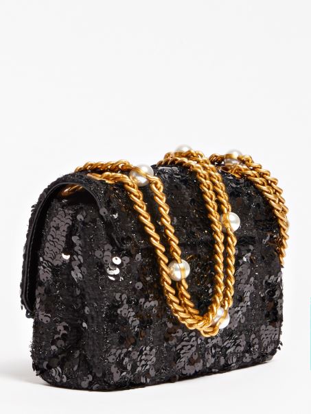 Geantă Guess Neagră Cu Paiete Virtuale Mini