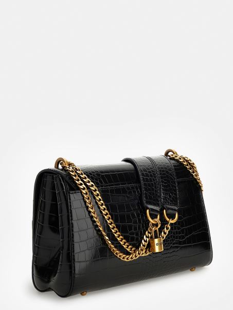 Guess Katey Croc Cu Imprimeu Crossbody Negru