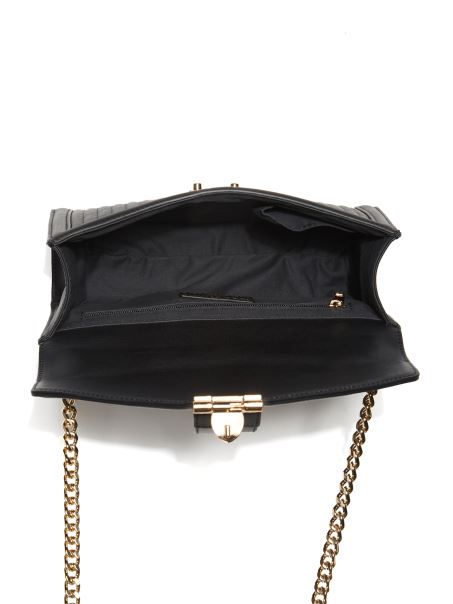 Stunning glamour in a single crossbody. This genuine leather crossbody bag features a gold-tone chain-link strap, fold-over flap and push-lock closure.