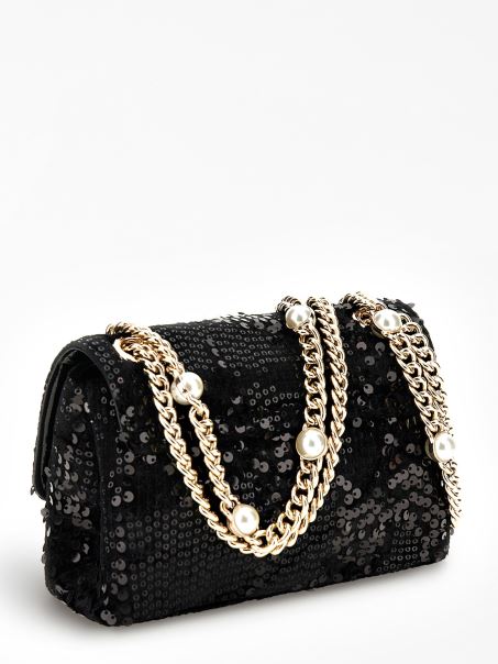 Mini Crossbody Negru Cu Paiete Guess Ever