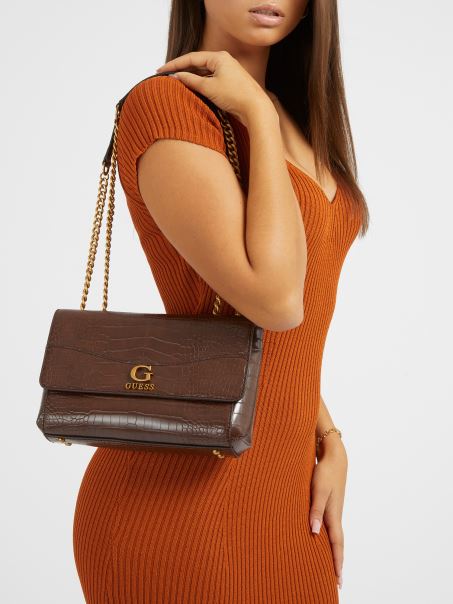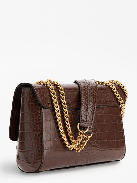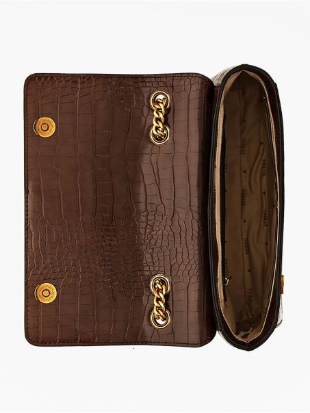 Nell Crossbody Cu Imprimeu Croc Maro Guess