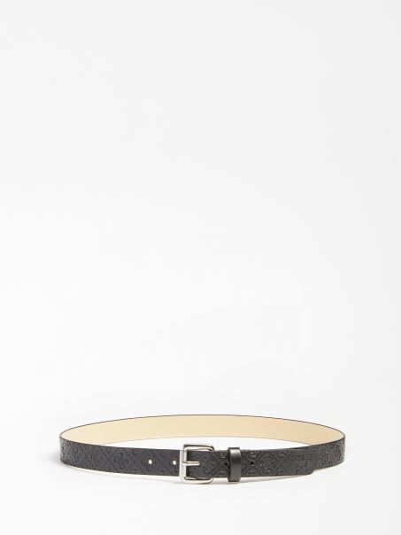 Centură Neagră Cu Imprimare Logo Guess Peste Tot 4g