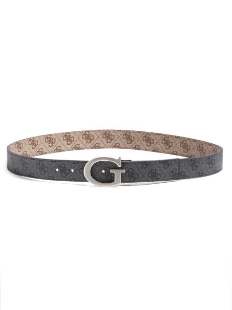 Reversible belt with signature 4-G logo print. Black and grey on one side, brown and tan on reverse.