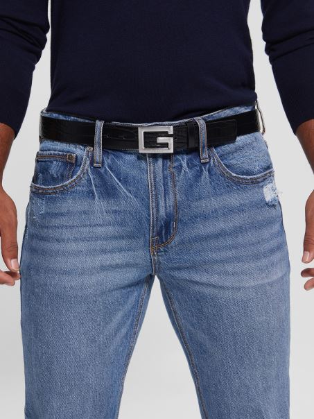 Guess Curea Neagră în Relief Cu Crocodil Calabria
