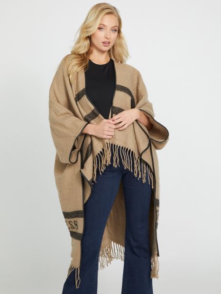Completați-vă Aspectul Cu This Ruană Caldă Din Tricot, Cu Un Design Solid, Cu Detalii în Dungi și Text Cu Logo Lângă Capetele Cu Ciucuri. Stil: 14383980