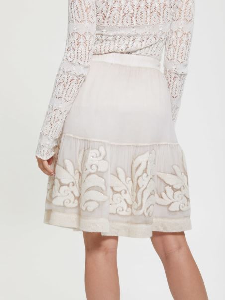 Home| Femei| Fusta De Matase Brodata Alb Guess