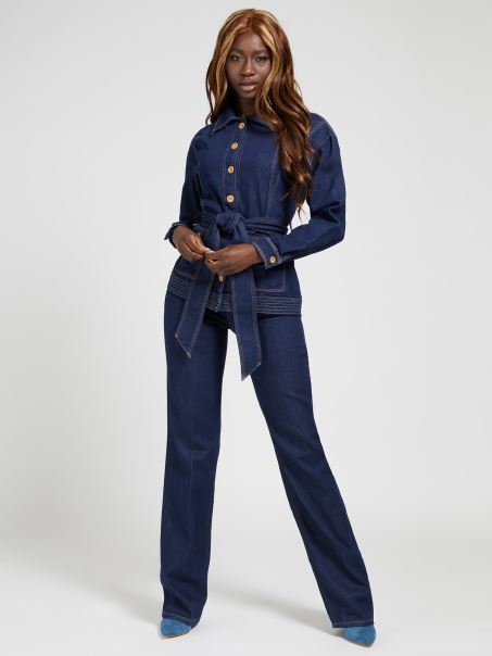 Home| Femei| Jacheta Denim Guess Cu Centura Comfort Fit Albastru
