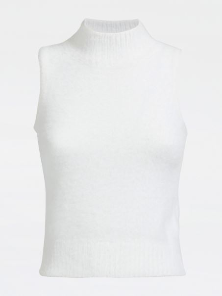 Pulover Cu Gât țestoasă Fără Mâneci Guess White