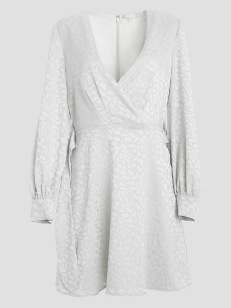Vei Ilumina Camera în Această Rochie Din Jacquard Din Satin. Cu Imprimeu De Leopard Peste Tot, Decolteu Surplis, Mâneci Lungi Cu Balon și Curea Cu Cravată în Talie. Realizate Din Plastic Reciclat.