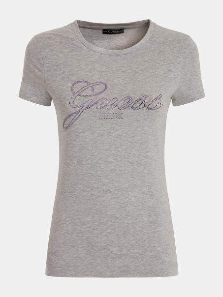 Tricou Gri Cu Strasuri Cu Logo Multiplu Guess