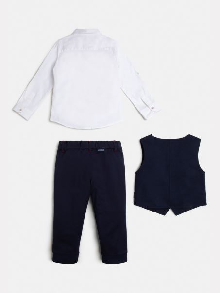 Set De Pantaloni De Cămașă Cu Vestă Cu Logo Guess Albastru