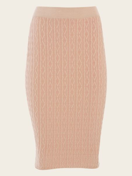 O Piesă De Declarație Uimitoare. Această Fustă Din Tricot Pulover Are Un Design Cu Logo M Jacquard și O Talie Cu Bandă Cu Nervuri într-o Potrivire Care îmbrățișează Curbe.