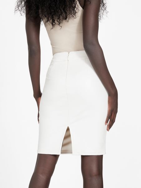 Fustă Creion Din Piele Artificială Amer Porumbel Alb Guess